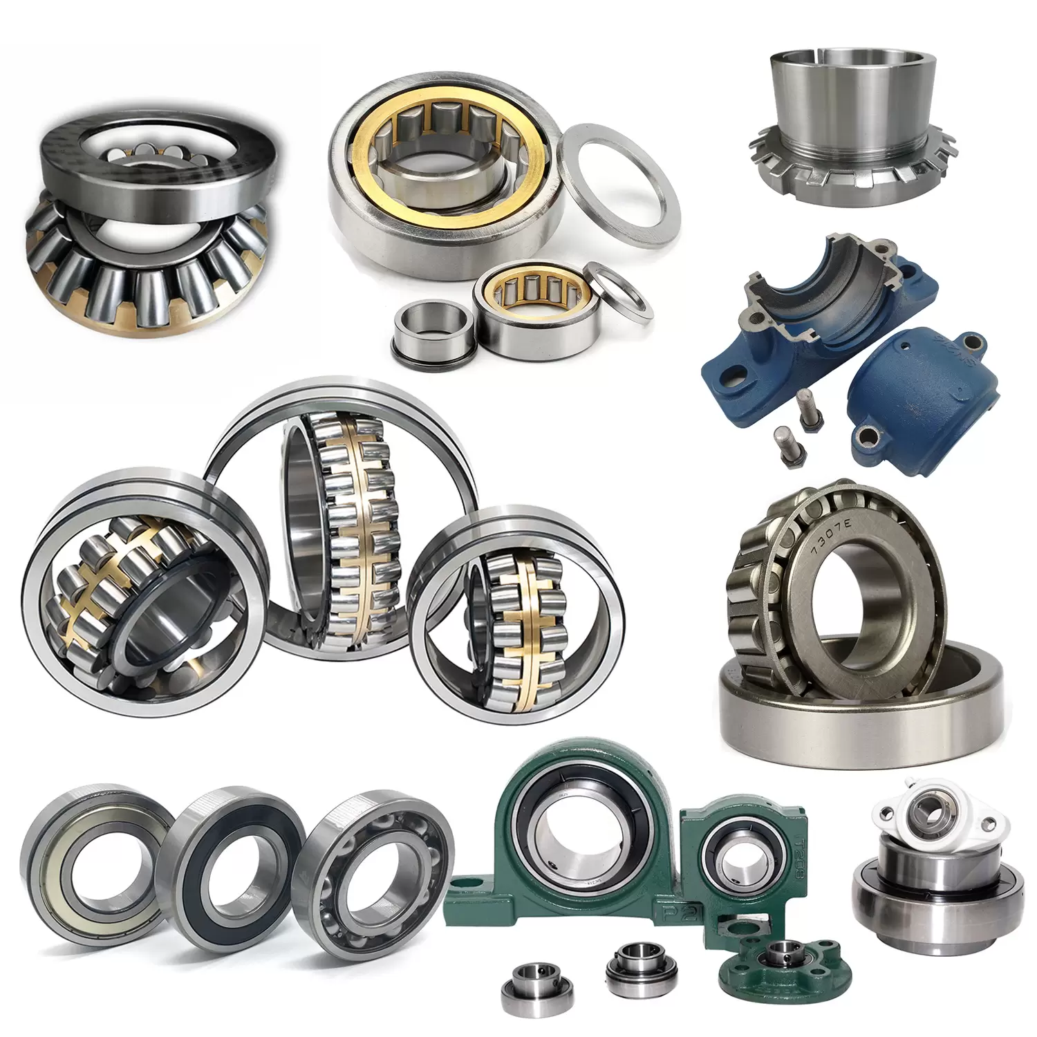 Сферические роликоподшипники имеют двухрядные ролики, наружное кольцо имеет общую сферическую дорожку качения, а внутреннее кольцо – две дорожки качения, наклоненные под углом к оси подшипника. Эта продуманная конструкция обеспечивает самоустановку, что исключает влияние угла вала и посадочного места подшипника на погрешность или изгиб вала. Они подходят для случаев монтажных погрешностей или прогиба вала, вызванных угловыми погрешностями. Помимо радиальной нагрузки, подшипник также выдерживает осевую нагрузку в обоих направлениях.